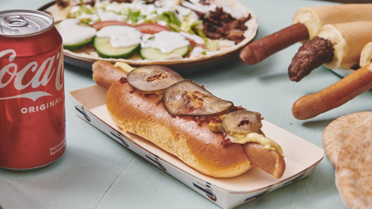 2x valgfri hotdogs serveret med 2x valgfri 0,33 l sodavand.