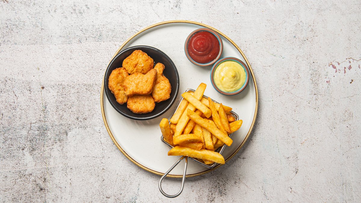 Serveres med pommes frites.