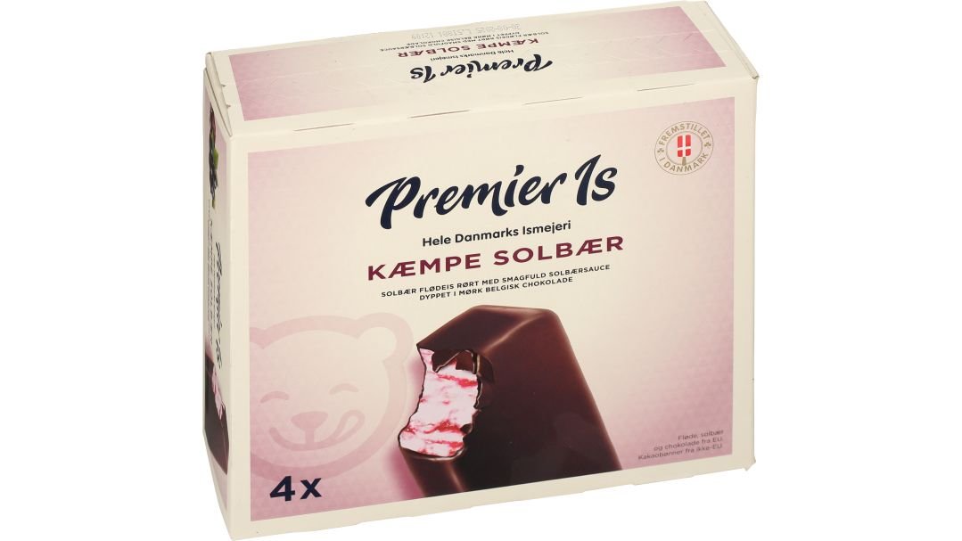4 xSolbær flødeis rørt med smagfuld solbærsauce, dyppet i mørk belgisk chokolade