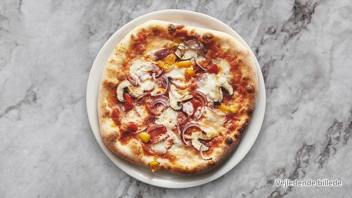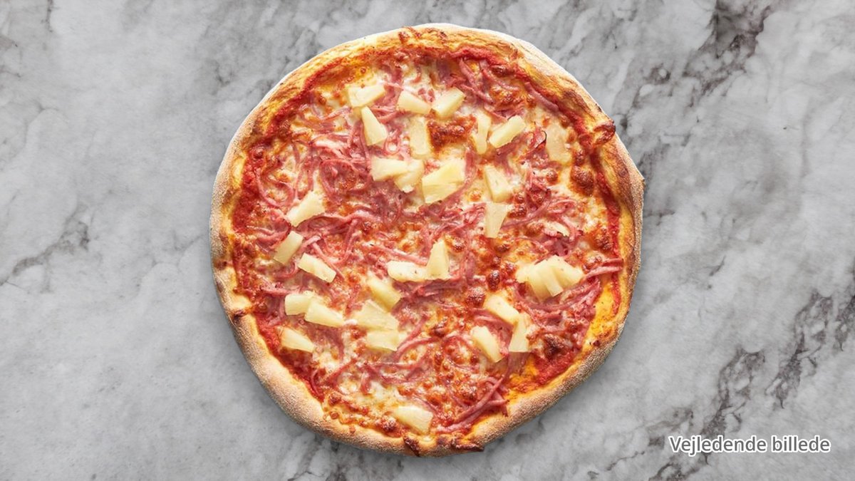 Tomat, ost, skinke, bacon, pepperoni, chili og hvidløg.