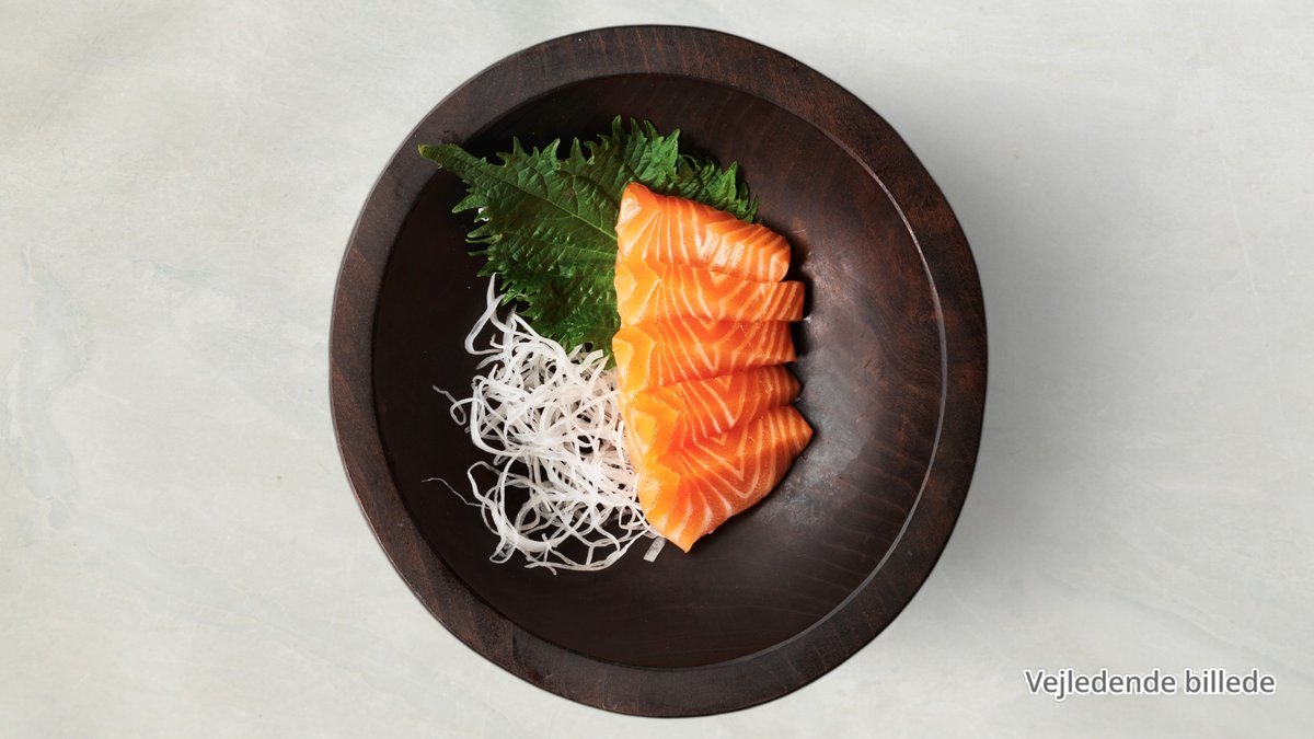 Lakse skiver serveres med ruccola, citron, olivenolie, brød.