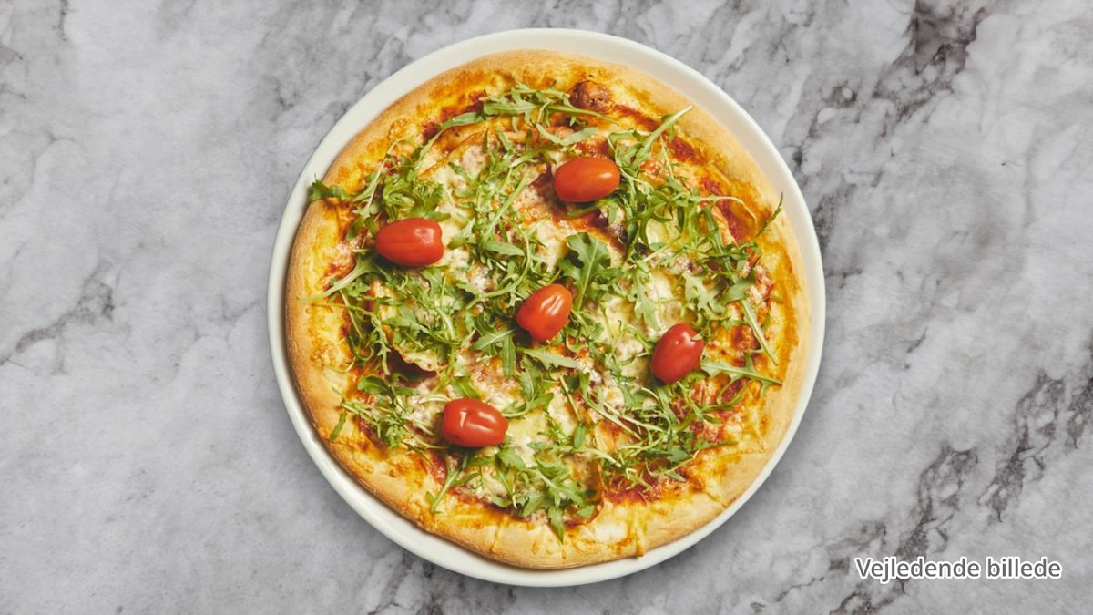 Tomatsauce, ost, parmaskinke, rucola og løg.