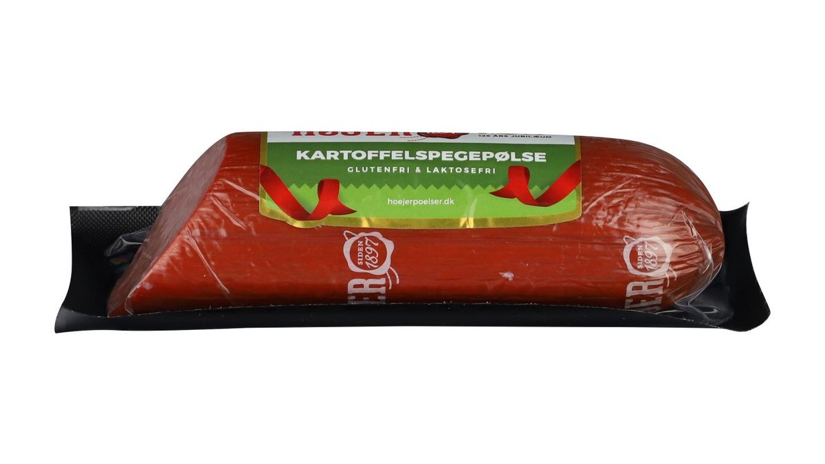 Svinekød 105 g., kartofler 13 g., oksekød 8 g., salt, krydderier (SENNEP), gørekstrakt, dextrose, rom, starterkultur. Konserveringmiddel: E250, antioxidant: E300, E301, GdL: E575.
