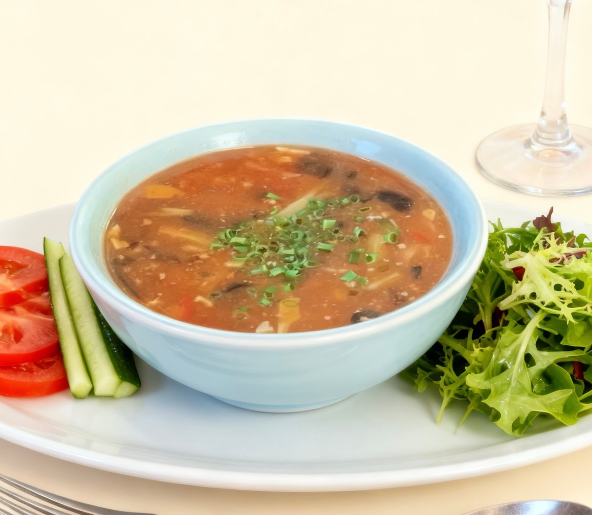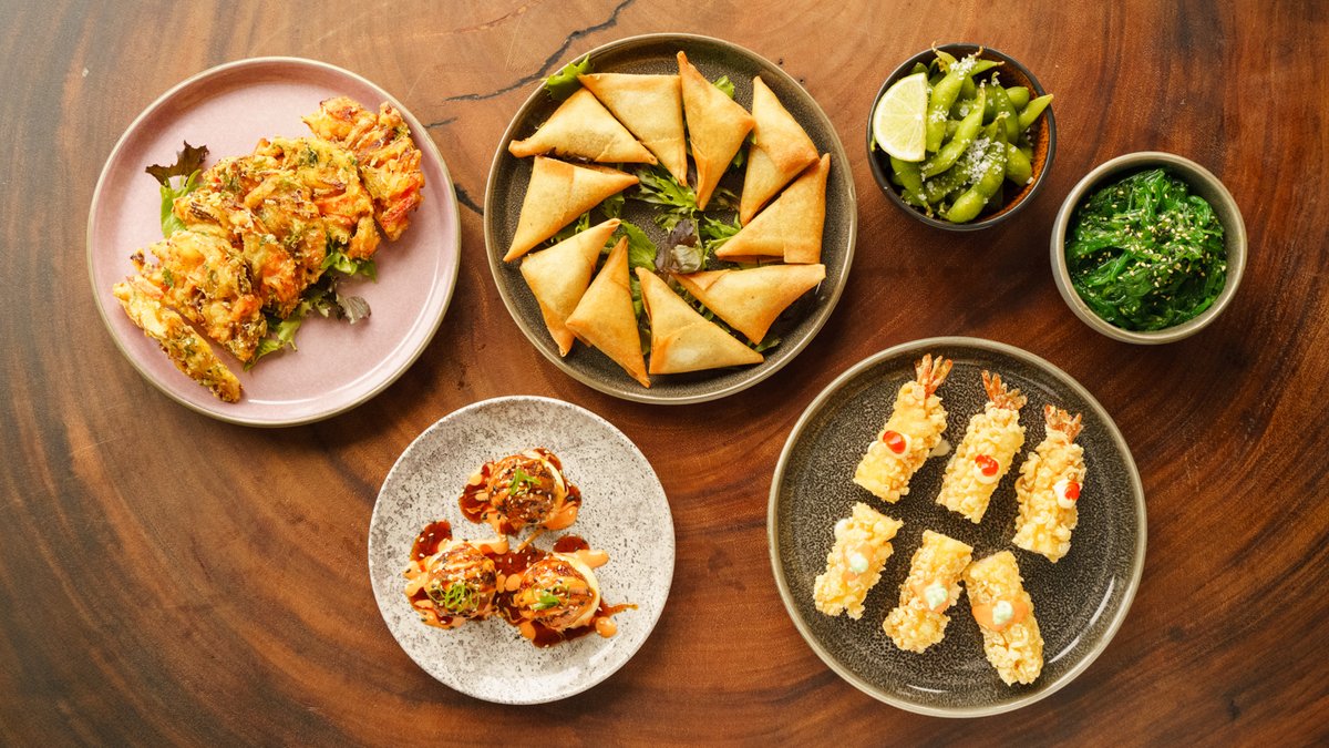 Cucumber salad, Wanton soup, Japanske boller 2 stk, Krebs siu mai 2 stk, Spicy dumplings 2 stk, Char siu bao2 stk, spring rolls 2 stk, Toast bite 4 stk, Roasted duck med rice.