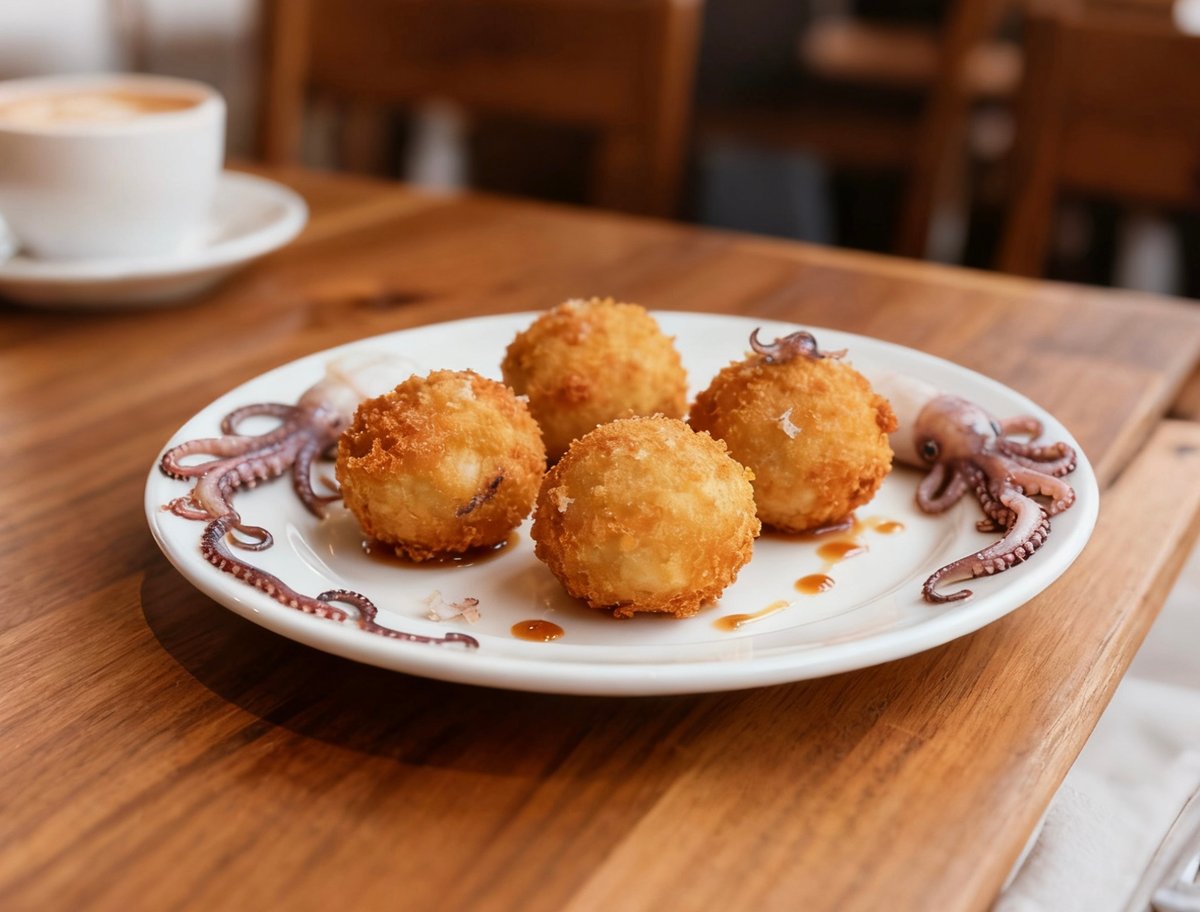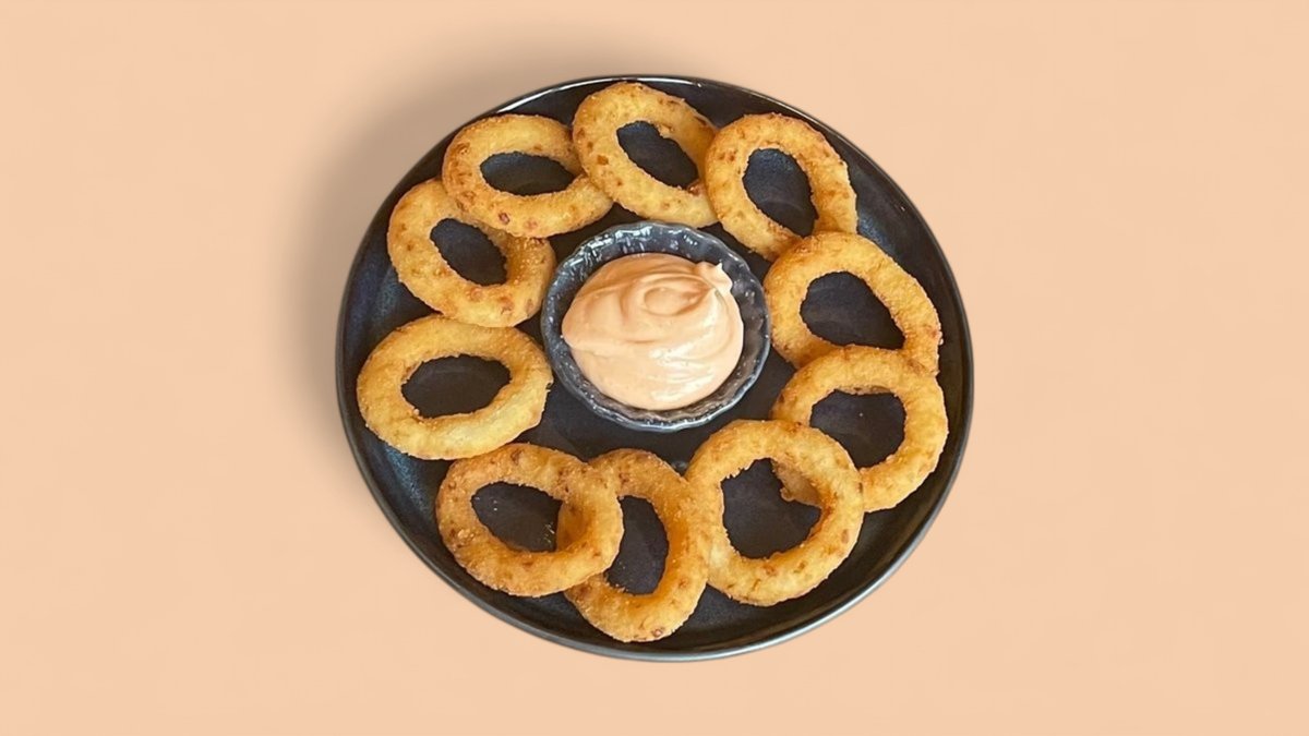 Tempura rejer, chilimayonaise, mayounaise, sesam, og grøn sauce.