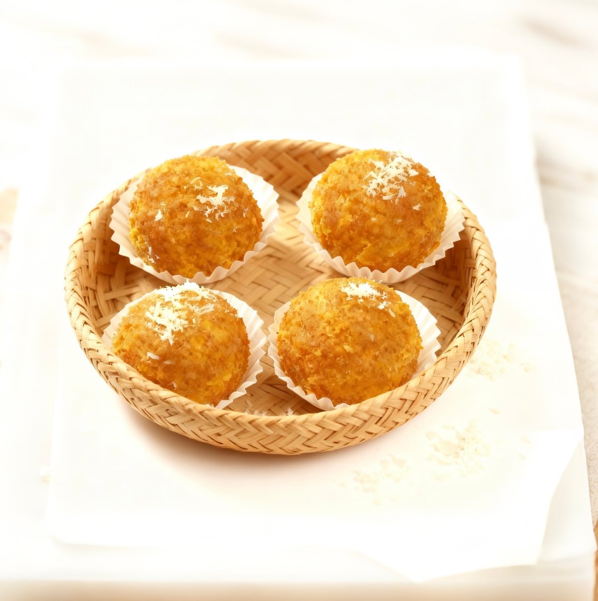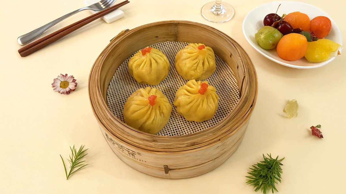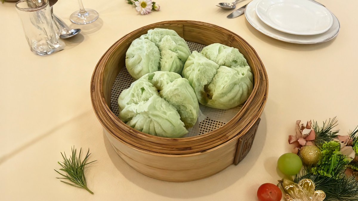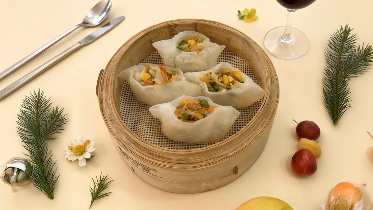 Stegt dejbolle med fyld af kylling og kinesiske grøntsager.