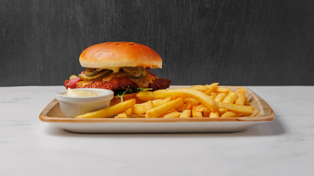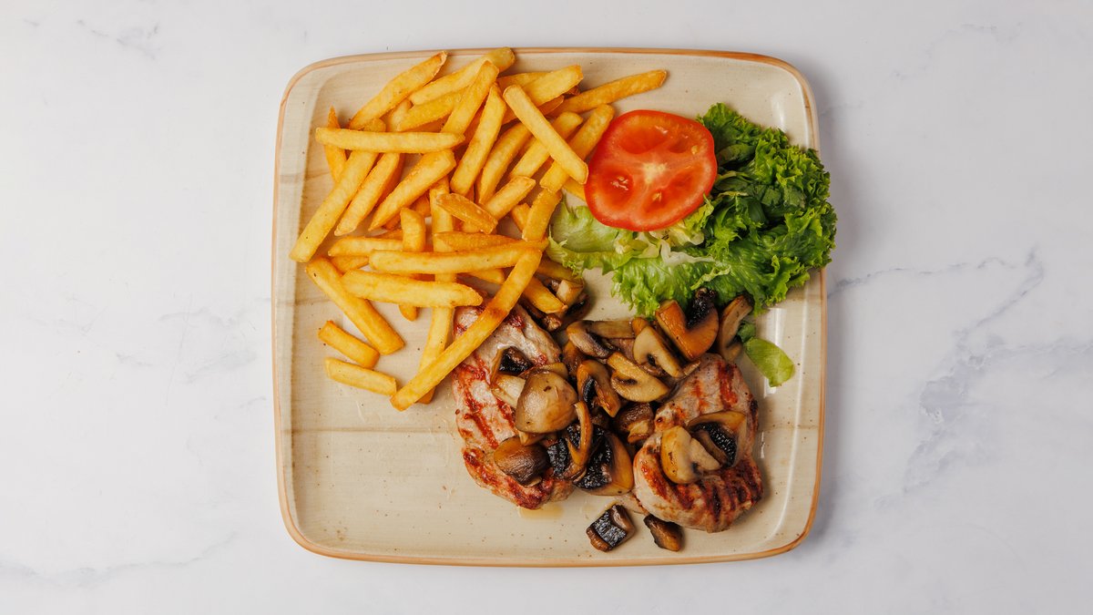Saftigt og lækkert stegt dansk kyllingebryst med valgfrie kartofler og sauce.