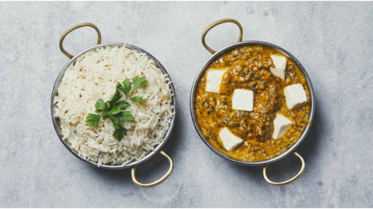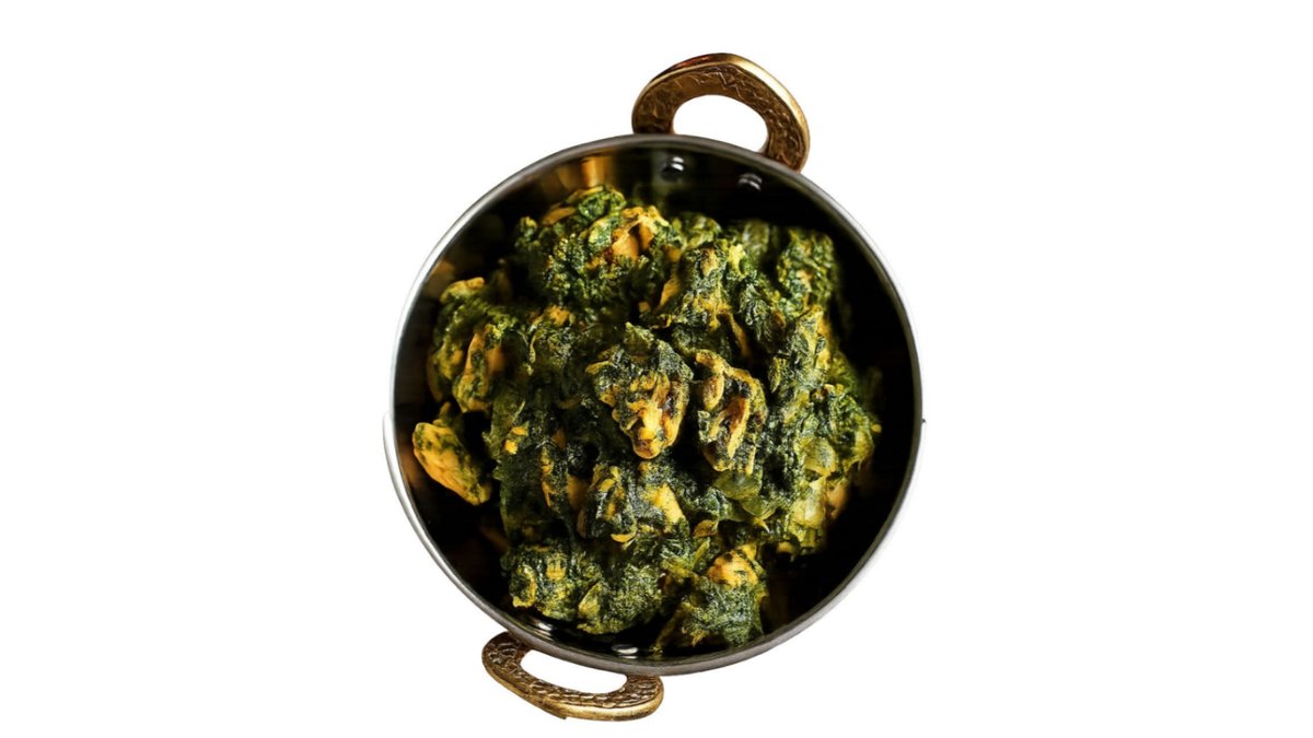 Indisk ost og spinat i en krydret sovs af tomat, løg, kokosmælk og aromatiske urter. Serveres med ris.