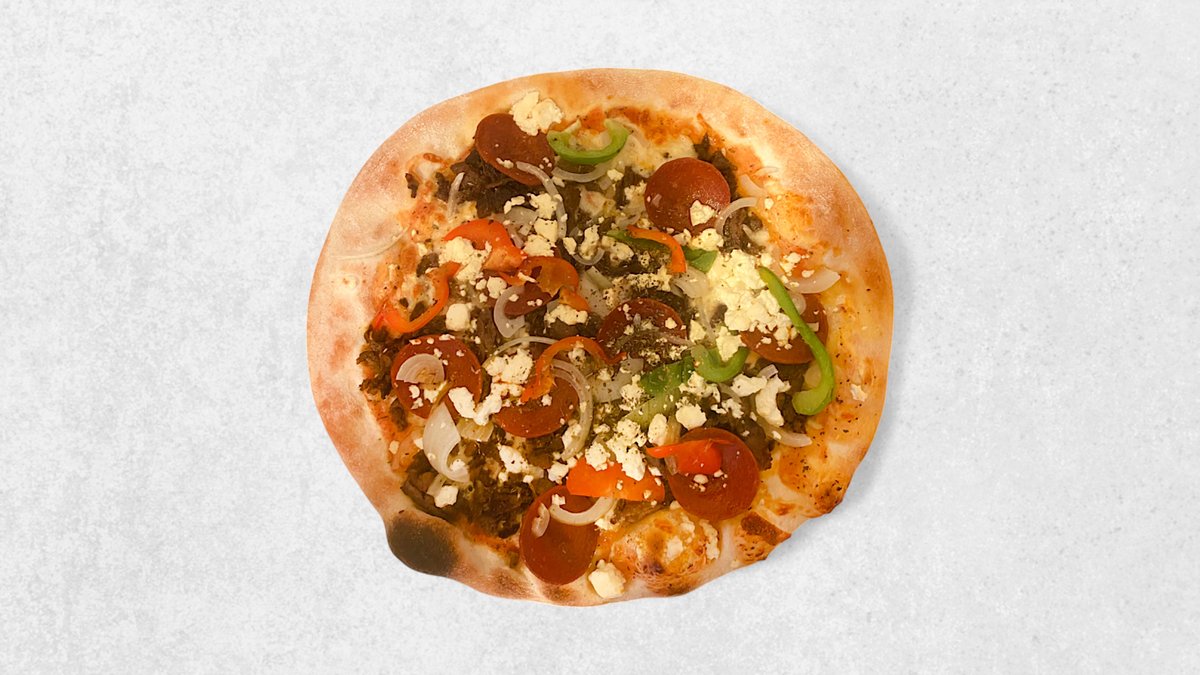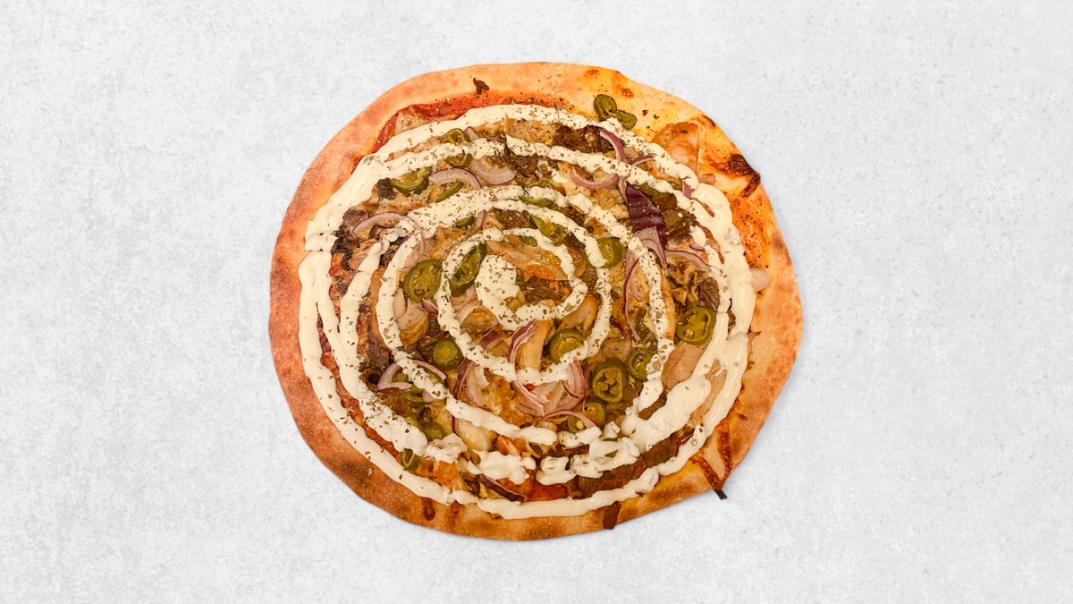 Tomat, ost, pepperoni, kebab, rød peber, jalapenos og hvidløg.