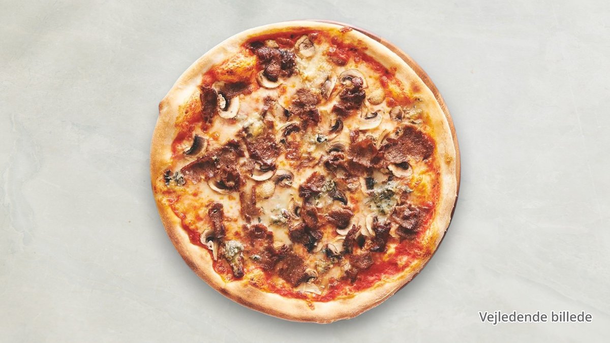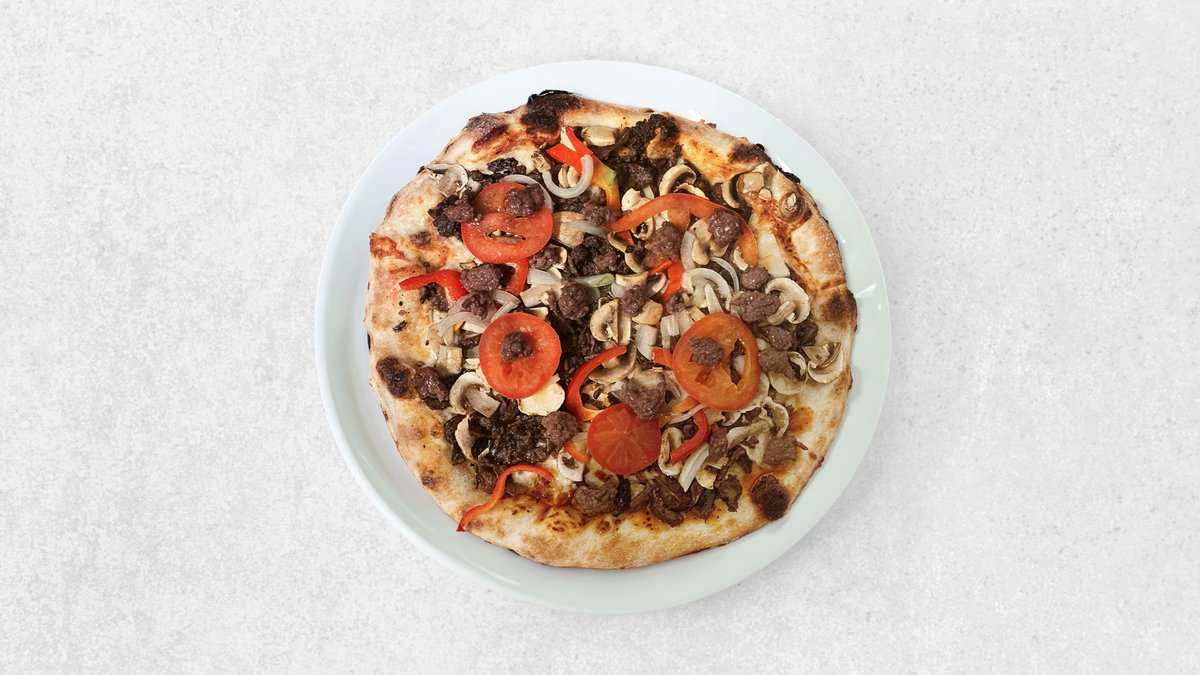 Tomat, ost, oksekød, pepperoni, champignon, gorgonzola, hvidløg og chili.