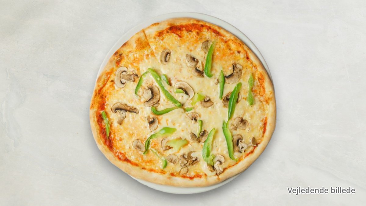 Tomat, ost, oksekød, skinke, kebab, champignon og hvidløg.