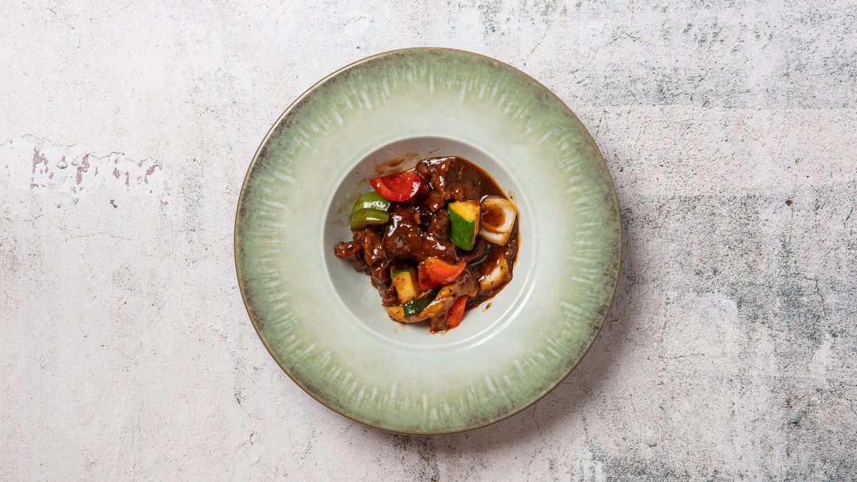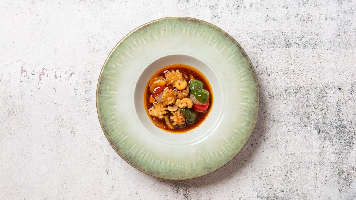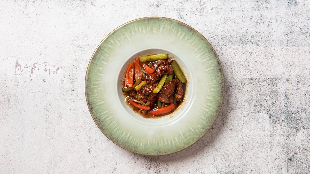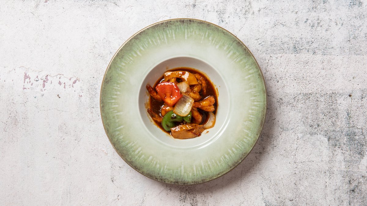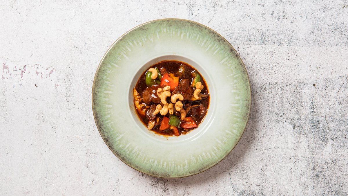 Suppe: - Peking suppe Forret: - Dybstegte kongerejer med sur-sød sauce. Hovedretter: - Sprød and med grøntsager i pandekage med hoisinsauce - Oksekød med chilisauce Serveres med ris.