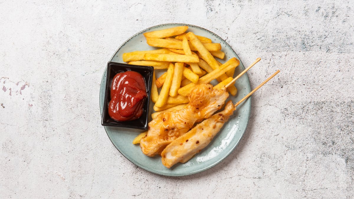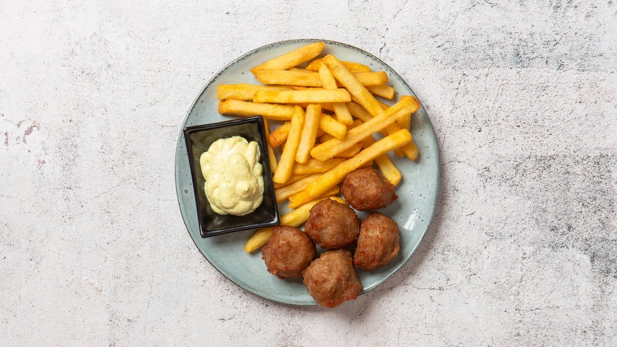 4 små retter: - Dybstegte kinarejer med sur-sød sauce - Dybstegt kylling med sur-sød sauce - Kylling i karry - Oksekød med grøntsager Serveres med ris
