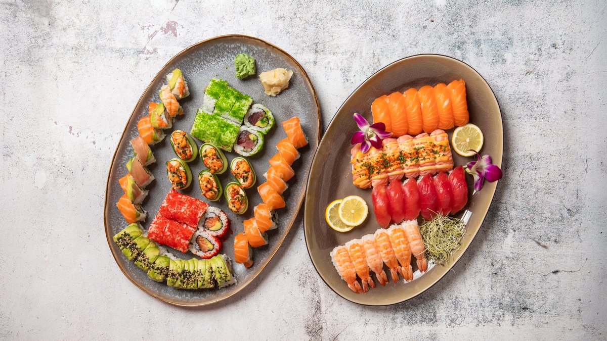 Nigiri: 2 x Laks 2 x Tun 2 x Rejer Uramaki: 8 x Crispy Ebi Roll 8 x Special Ocean Roll