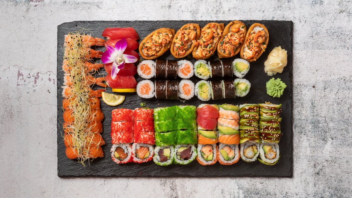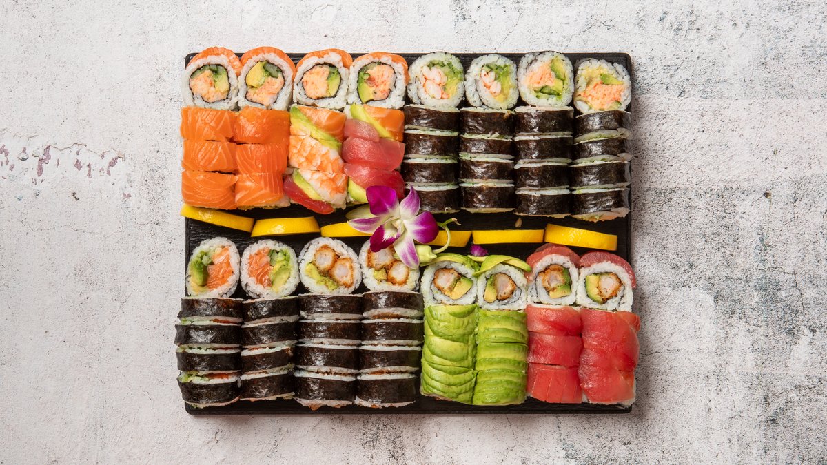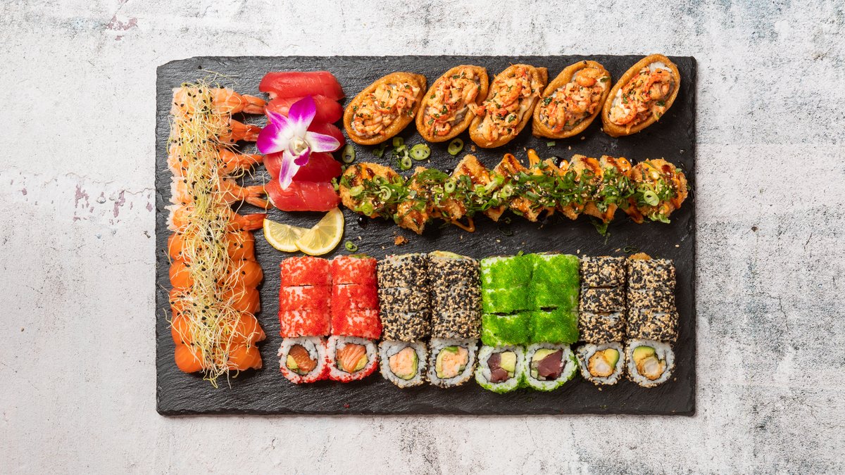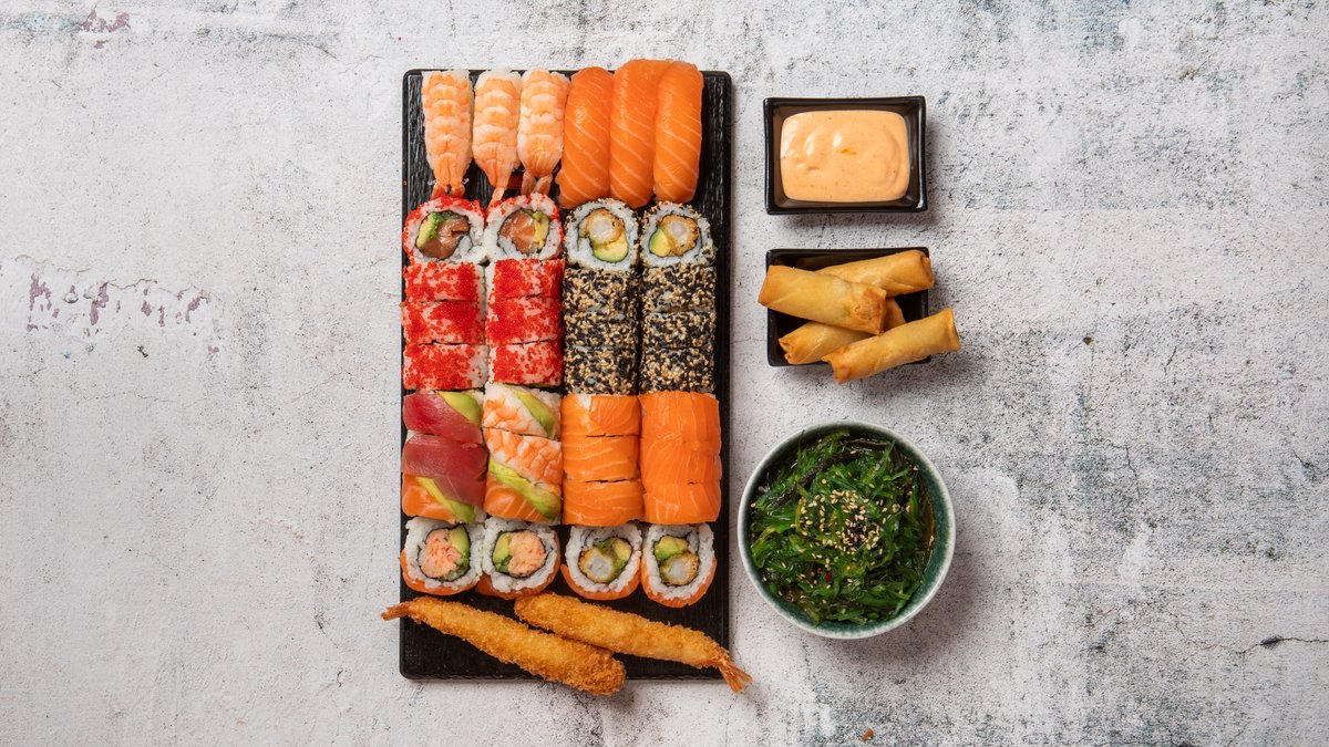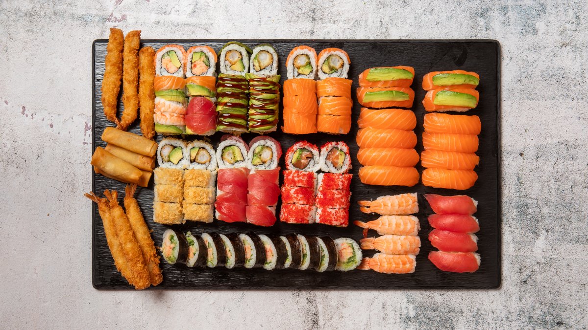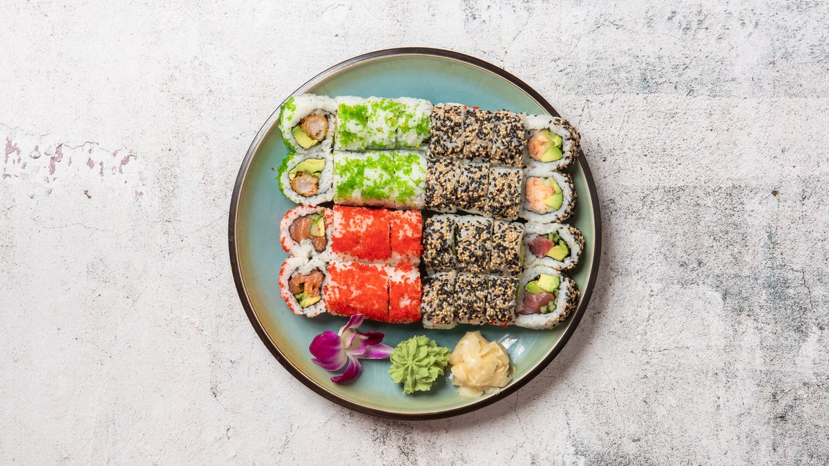 Kaburimaki: 8 x Laks De Luxe 8 x Ebi Panko Uramaki: 8 x Spicy Shake Roll 8 x Spicy Tun Futomaki: 10 x California Big Roll 10 x Shake Big Roll 10 x Ebi Big Roll 10 x Ebi Tempura Big Roll
