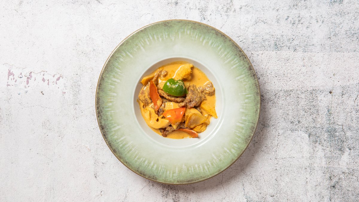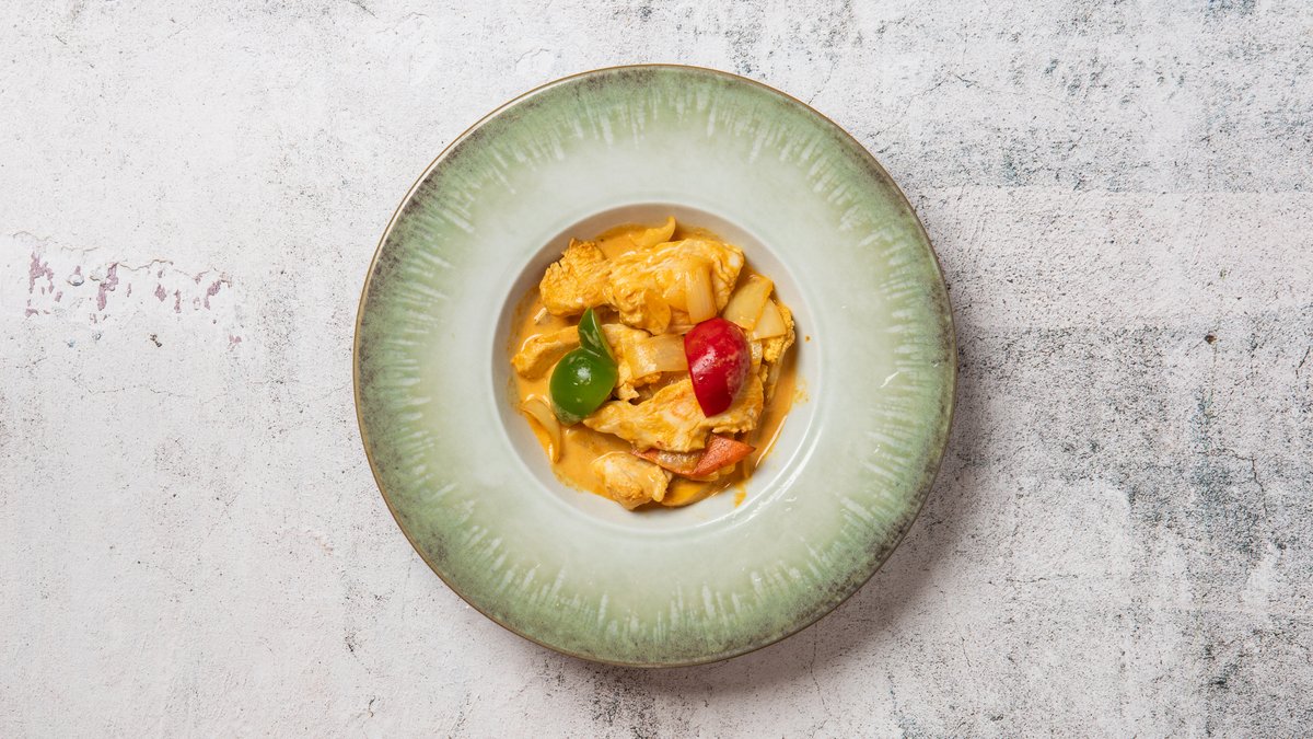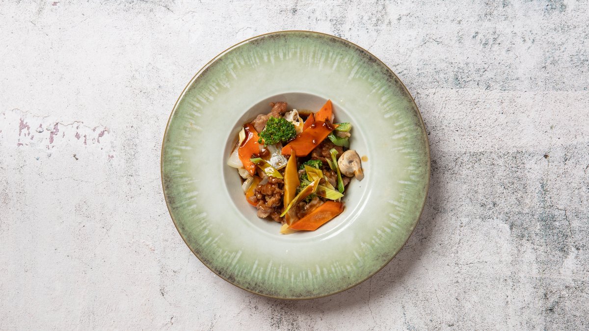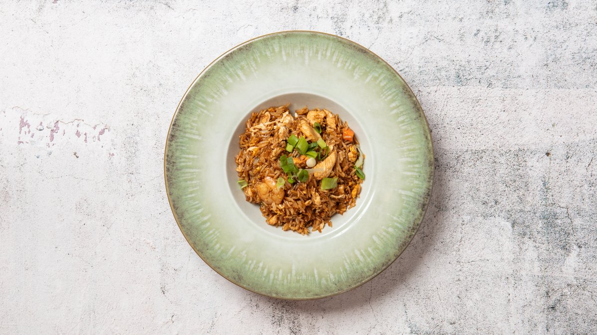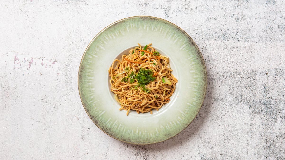 Ægnudler, æg, kål, gulerødder, kylling, bambusskud, hvidløg, shiitake svampe og pak choi. Toppes med forårsløg, koriander og hot sichuan sauce. Serveres med en valgfri dåsesodavand.