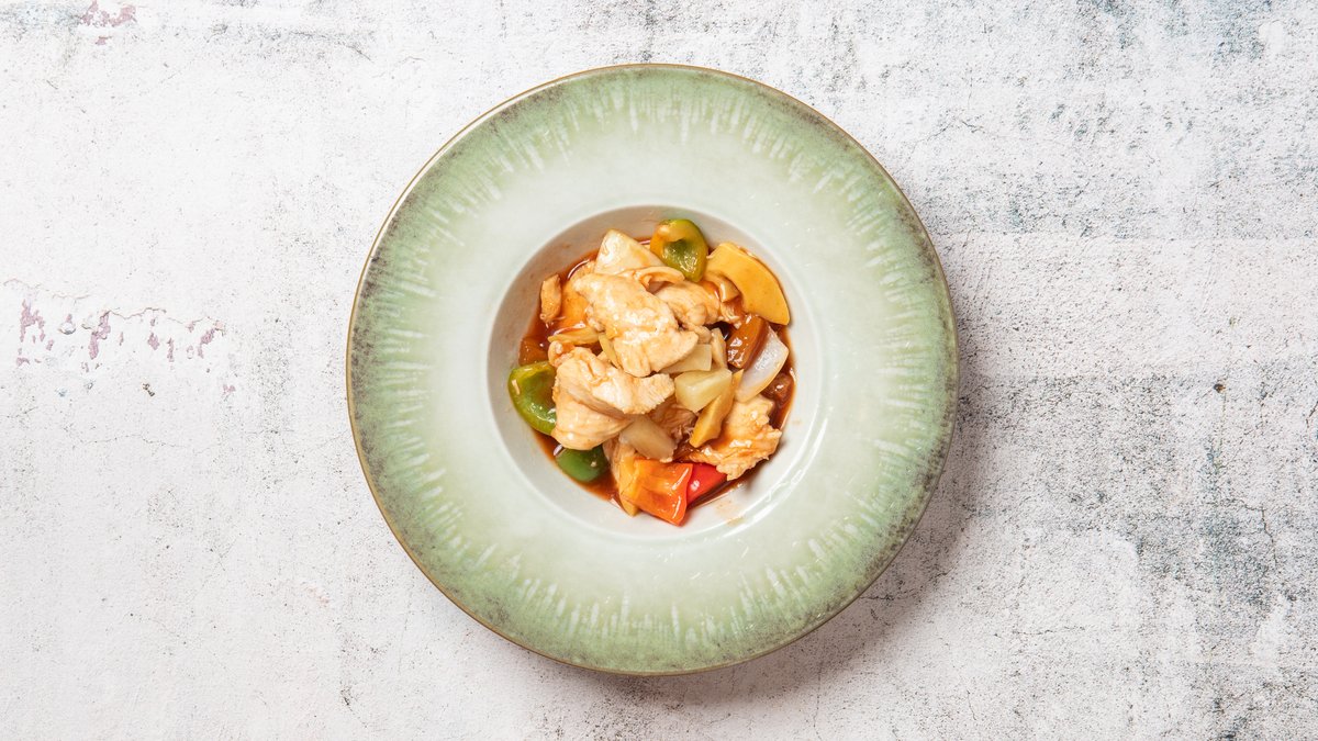 Suppe: - Pekingsuppe Forret: - Dybstegt wan-tan Hovedretter: - Dybstegte kinarejer med sur-sød sauce - Andesteg i kantonesisk stil - Oksekød med bambusskud og champignon Serveres med ris.