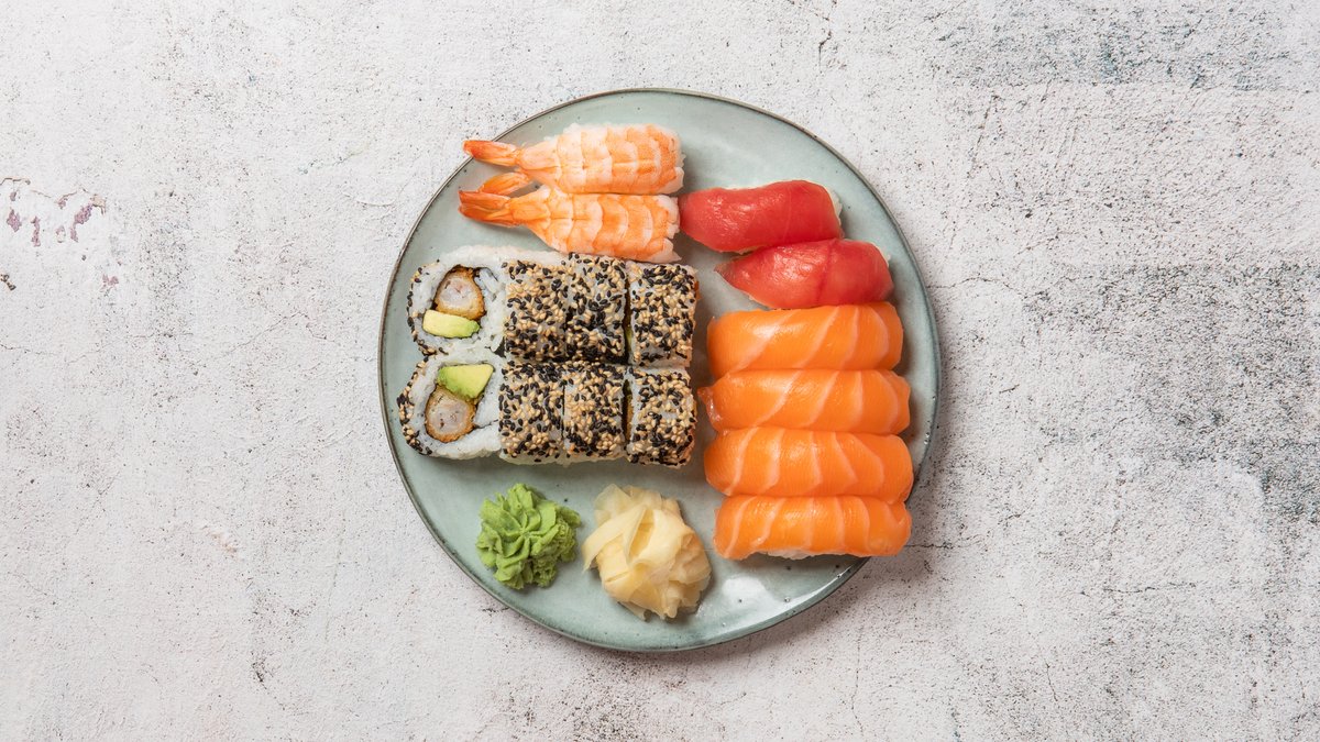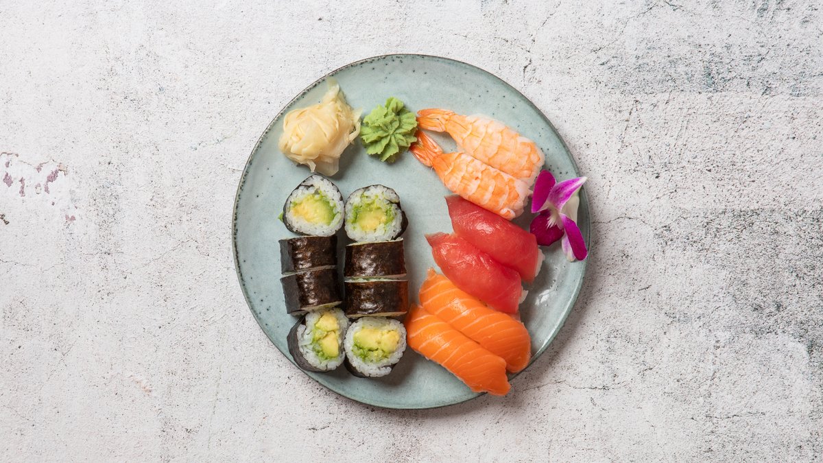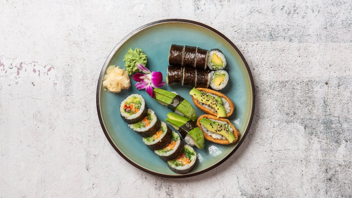 Nigiri: 2 x Laks 2 x Tun 2 x Rejer Hosomaki: 8 x Avocado