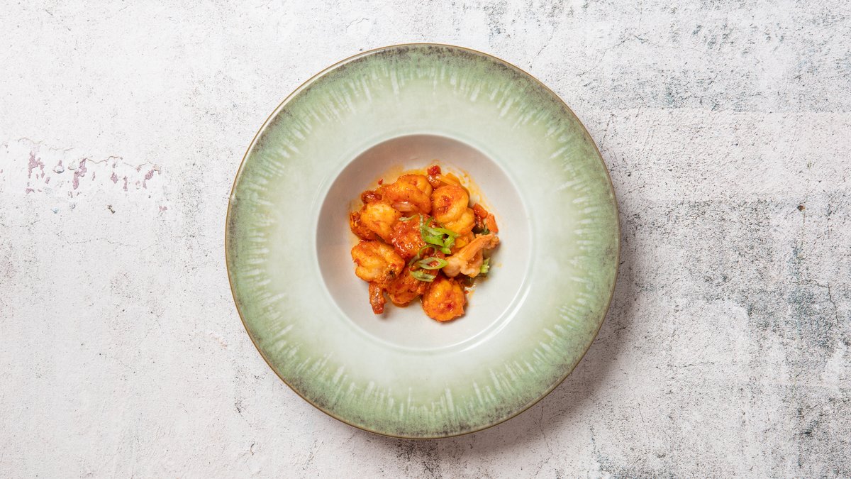 Suppe: - Peking suppe Forret: - 2 stk. store crispy rejer med chilimayo Hovedretter: - And med champignon og bambusskud - Hjemmelavet dybstegt kylling med sur-sød sauce - Stegte nudler med grøntsager og kogte ris.