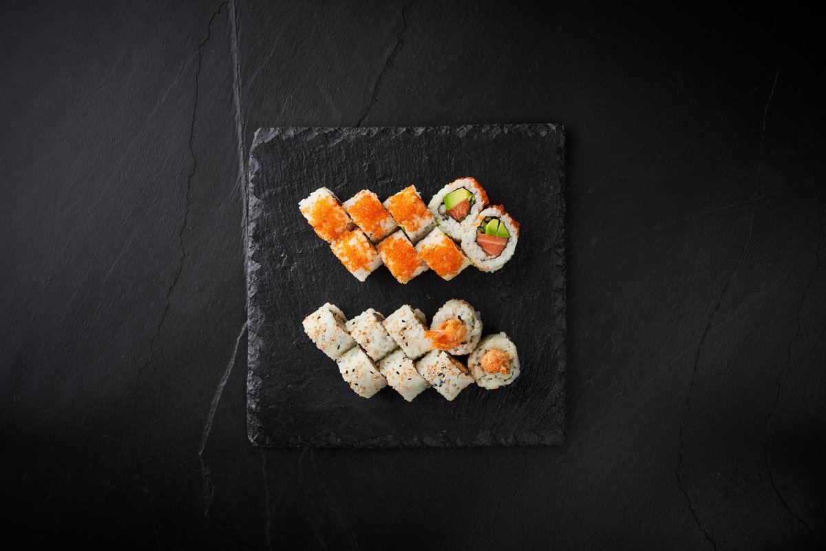 Nigiri 2 x Laks 2 x New York 2 x Reje 2 x Tun Uramaki 8 x Rainbow 8 x Laks Futomaki 6 x Big spicy tun Hosomaki 8 x Avocado