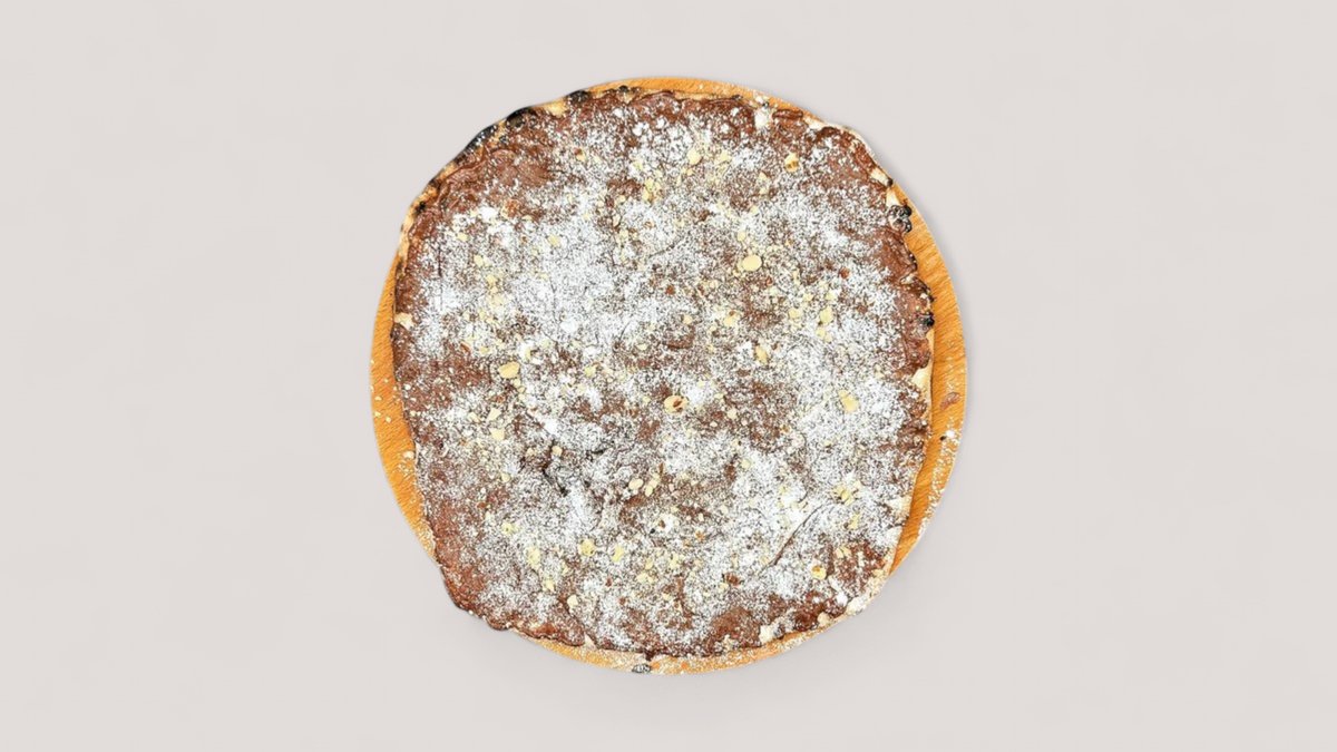 Pizzabund toppet med chokolade og mandler