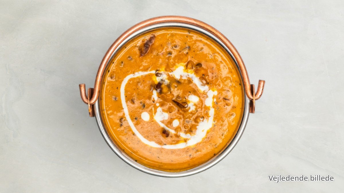 Marineret kyllingstykker tilberedt i smør, tomatsovs og nødder. Serveres med 2 stk papadom, ris, chutney, naanbrød og en chosen drink.