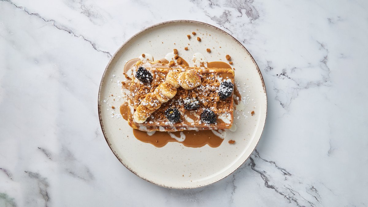 Sammensæt din egen belgiske vaffel. Medfølger 2 valgfri frugter.