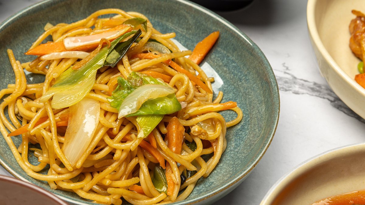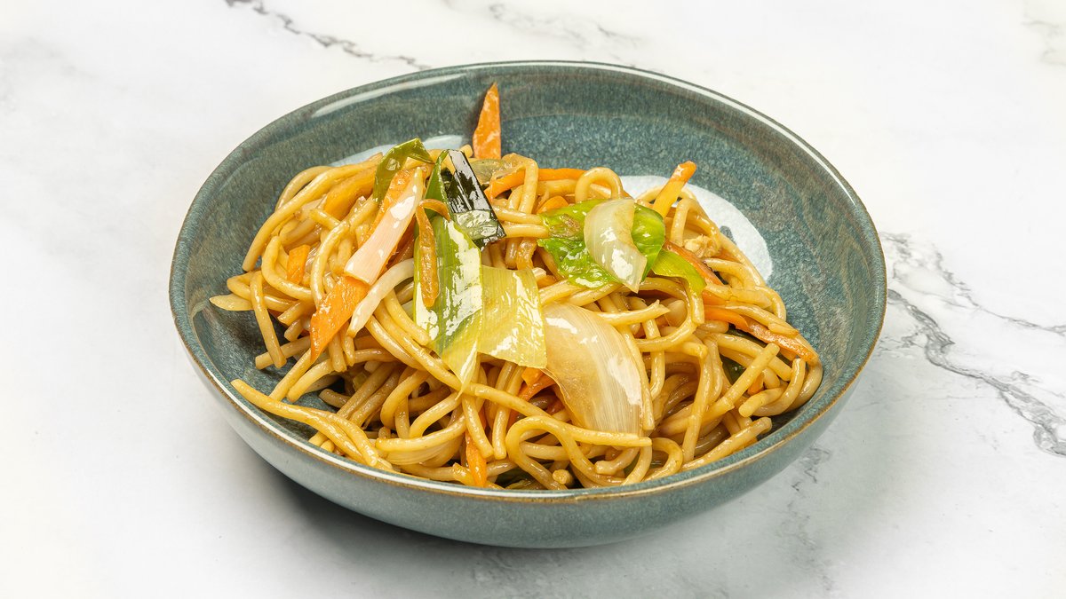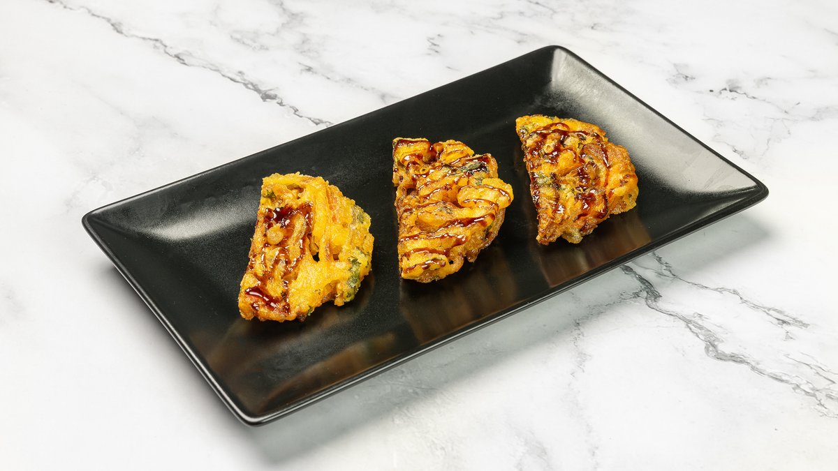 Sprød japansk tempuraret med fintsnittede og panerede grøntsagsstrimler, toppet med teriyakisauce.