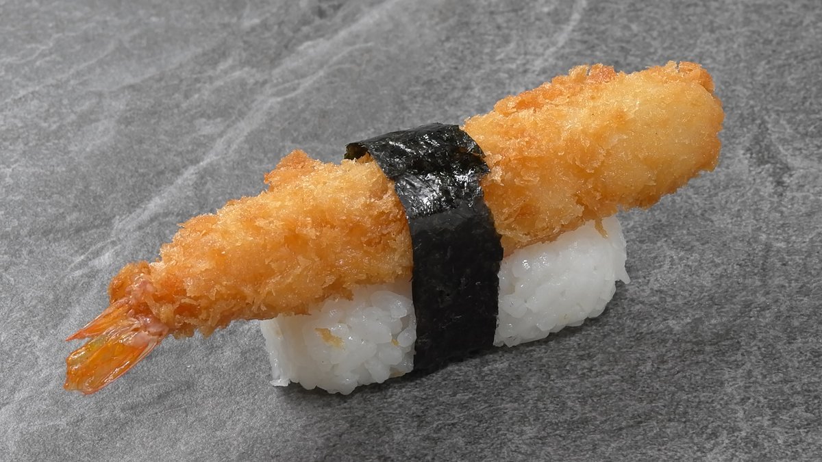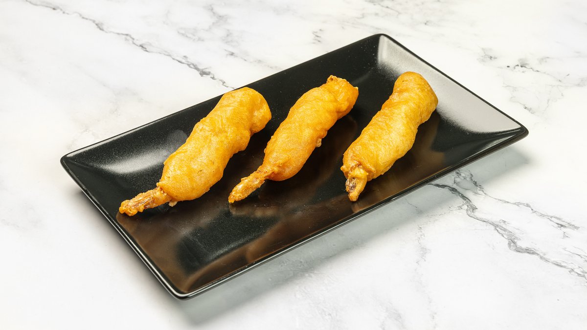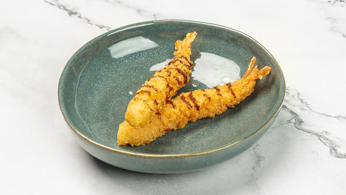 Lange rejer paneret i panko-rasp, toppet med teriyakisauce.