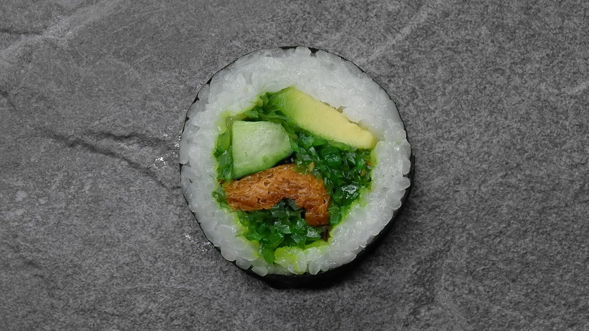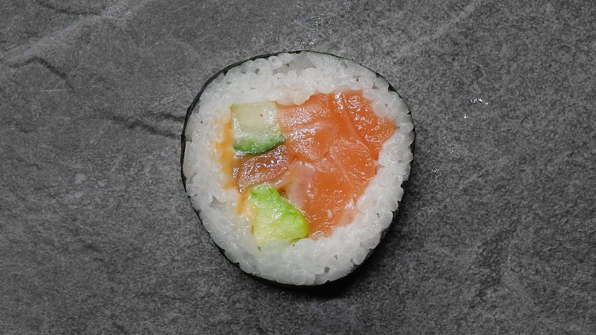 Futomaki: 5 x Spicy laks 5 x California 5 x Ebi Tempura Serveres med soja, syltet ingefær og wasabi.