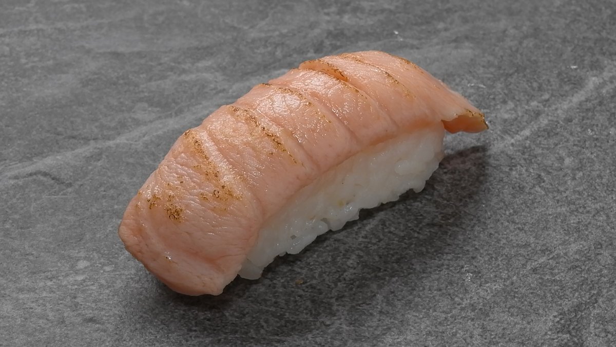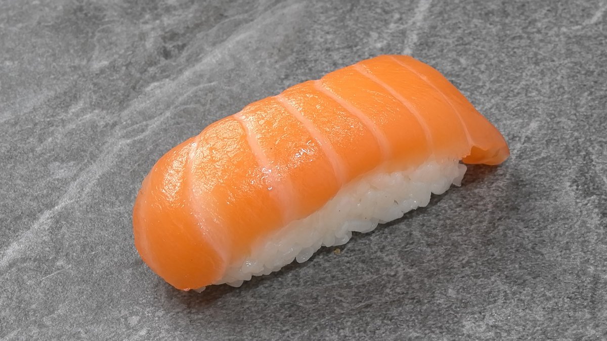 Bolle af ris toppet med rå fisk eller grøntsager, kommer stykvis.