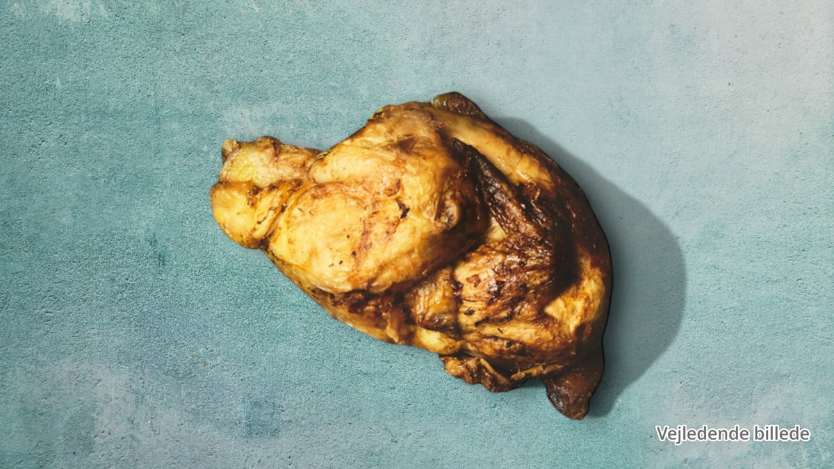 Kylling, halal pølser, oksekød.