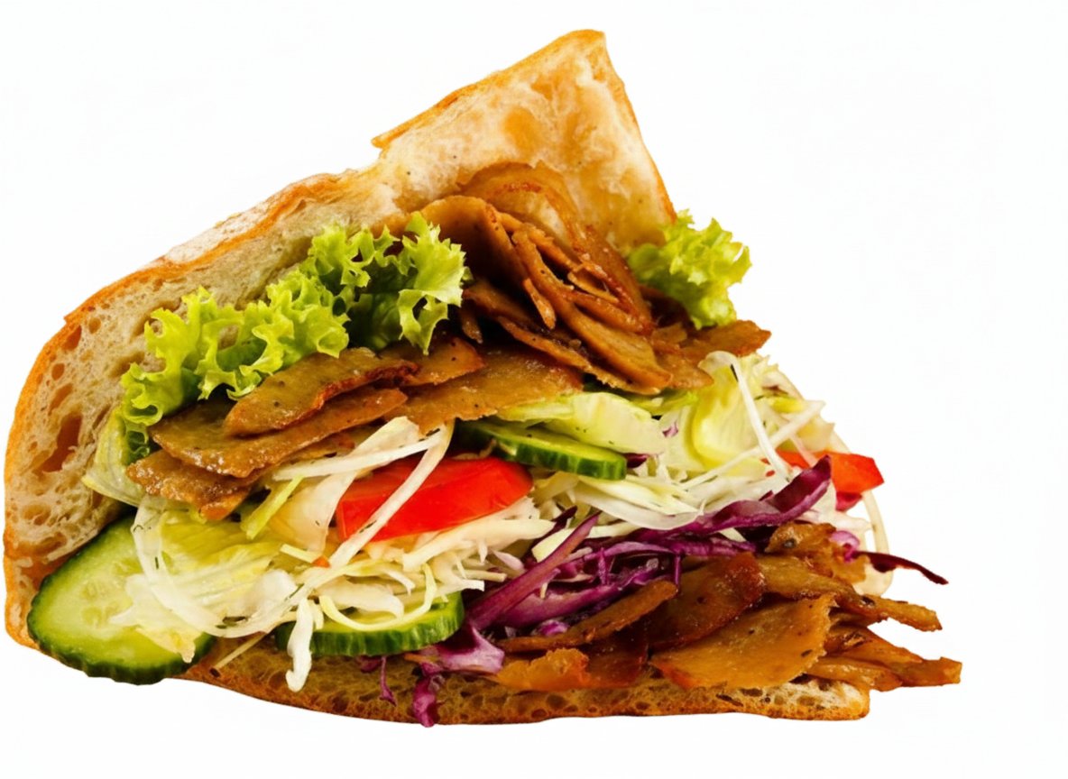 Fladbrød med fyld af saftig kebab, friske grøntsager og cremet dressing.