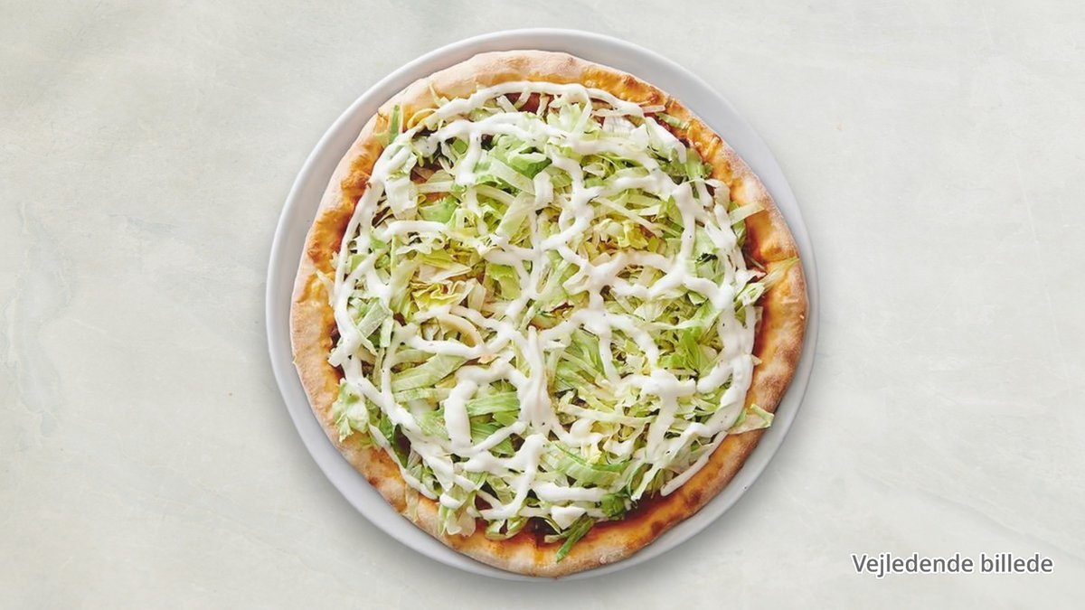 Tomatsauce, ost, kebab, kylling, jalapeños, paprika, chili og hvidløg.