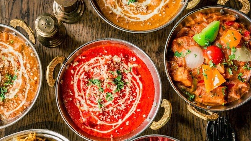 Papadam Sprøde chips af linsemel Samosa Sprød med grøntsager og sursød sovs. Butter Chicken Mild krydret kyllingefilet m. cremet karry af tomatsovs og krydderiblanding Tikka Masala Mild masala kryderet oksekød med cremet karry lavet af tomatsovs og kokkens specielle krydderiblanding. Masala dal Gule linser med spidskommen, hvidløg og koriander Retterne serveres med... Garlic naan Koget ris Raita et lille sødt indslag
