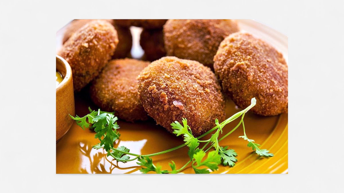 Cutlet med fyld af tun og kartoffler. Serveres med sursød sovs.