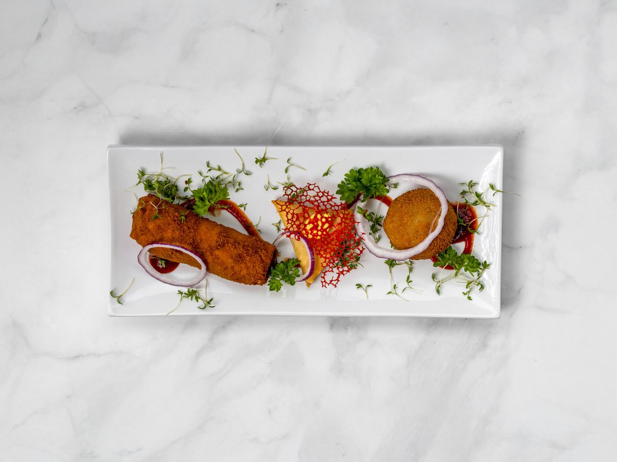 Anbefales til 2 personer. 2 x Forårsruller 2 x Samosa 2 x Cutlet Serveres med sursød sovs.