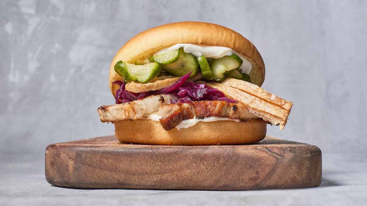 Sandwich med fyld af mayo, steg , sprøde svær, syltede agurker og rødkål. Serveres med pommes frites, dyppelse og en valgfri sodavand.