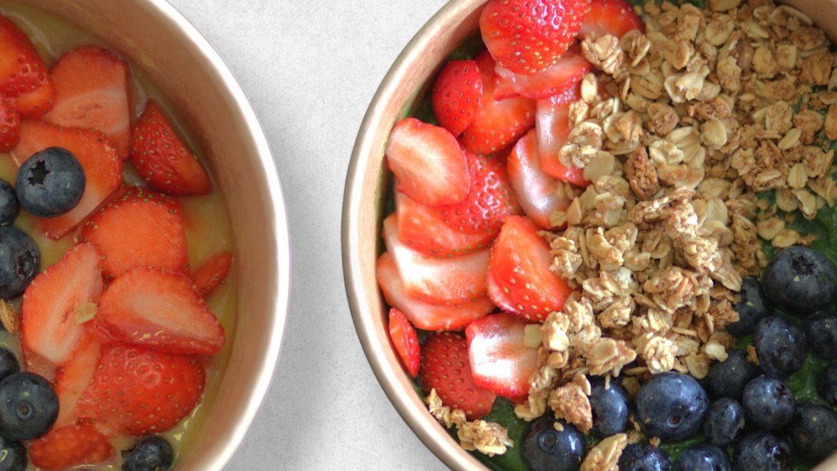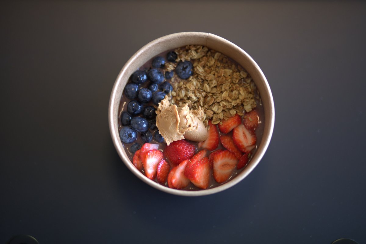 Acai, banan og mango. Vælg selv hvad bowlen skal blendes med.