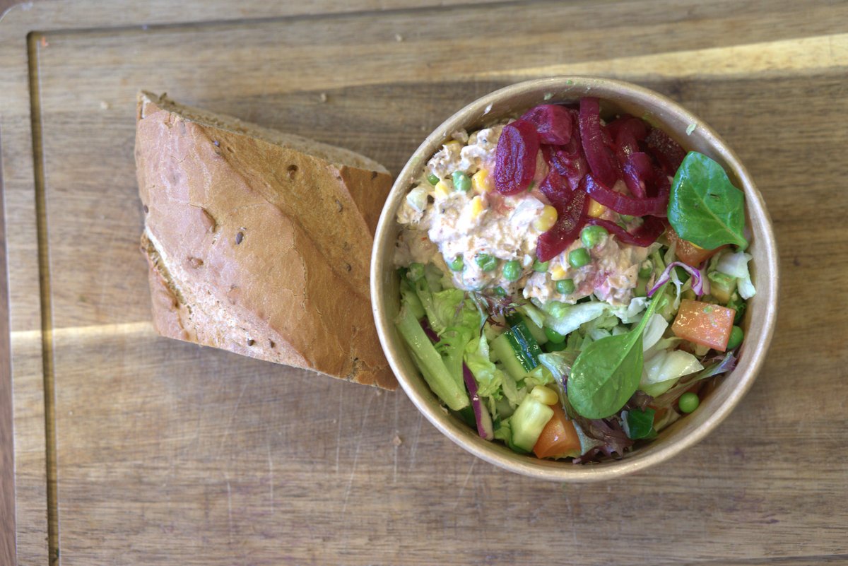 Iceberg, sprøde ærter, søde majs, agurk, saftig tomat, tunmousse og valgfri dressing. Serveres med valgfrit brød.