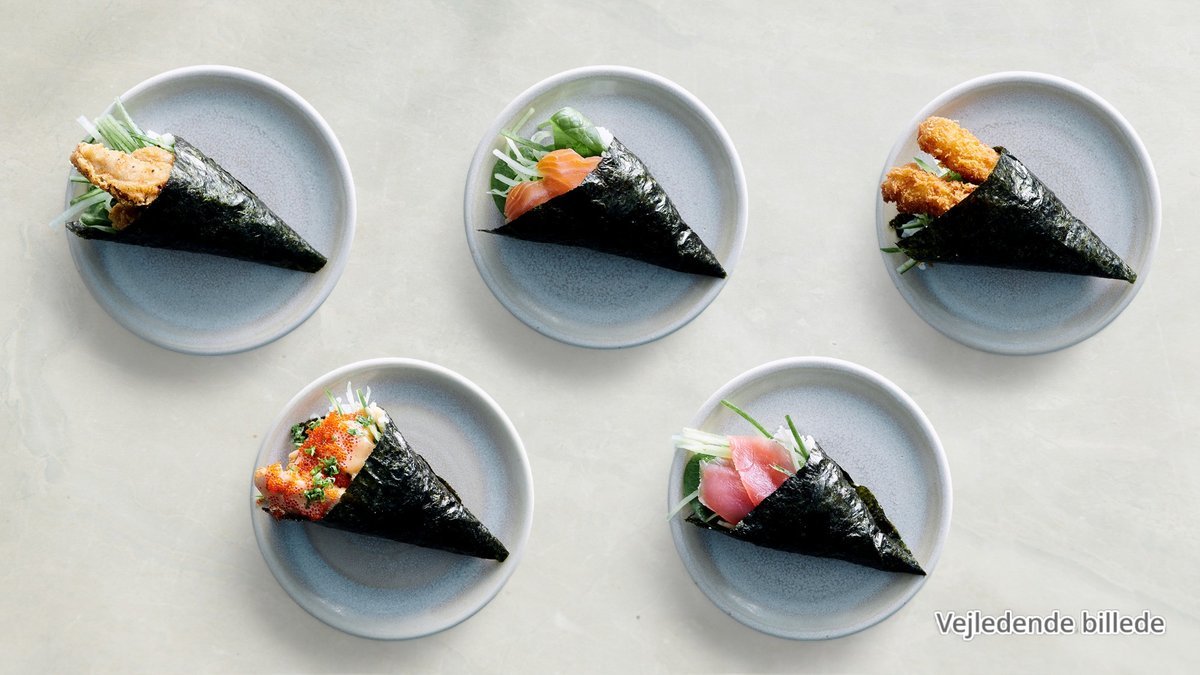 Nigiri 5 x Laks 5 x Flammegrillet Laks 5 x Tun 5 x Rejer 5 x Tofu Uramaki 8 x California 8 x Spicy laks 8 x Crispy Ebi Hosomaki 8 x Laks 8 x Tun med forårsløg. Futomaki 6 x Stor Laks 6 x Stor Tempura 6 x Stor Kylling Roll