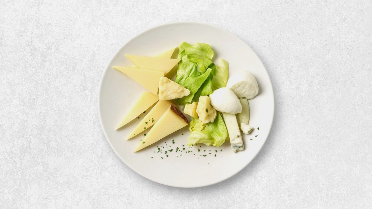 Et udvalg af italienske oste og forskellige grøntsager.