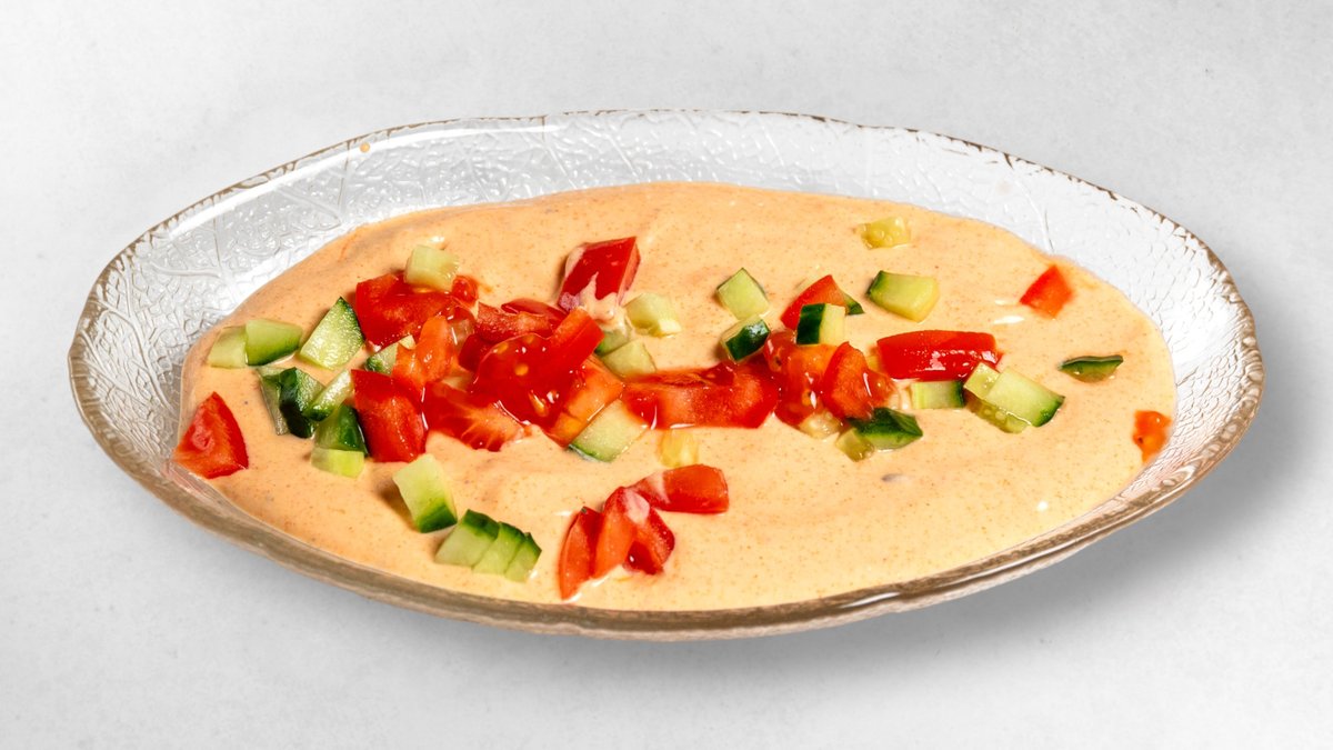 Gerillte Garnelen, gemischtes Gemüse, Joghurt