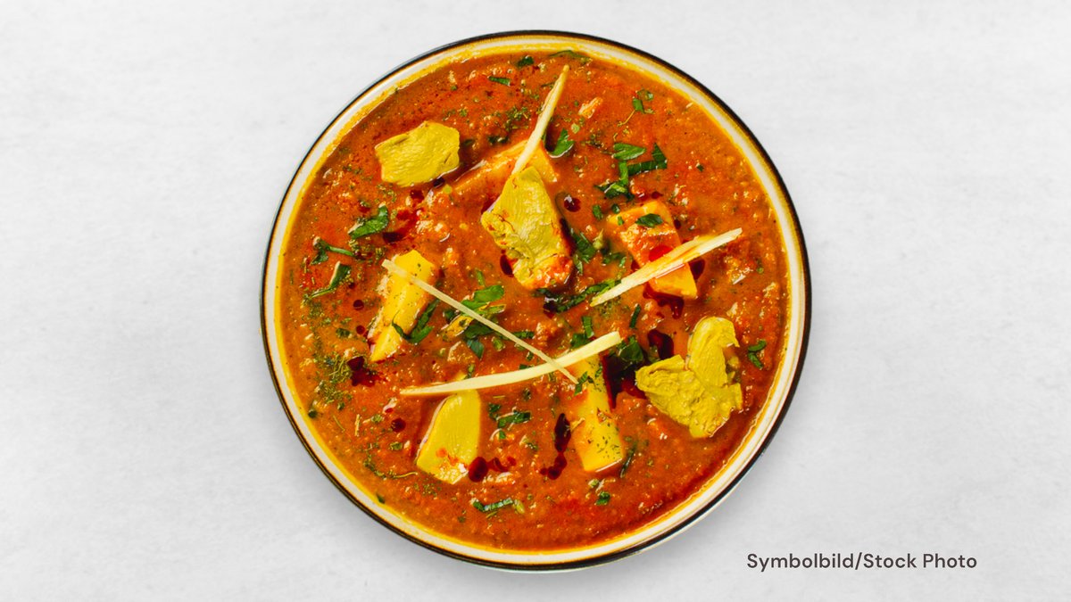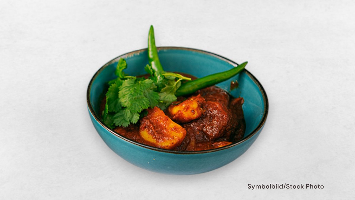 Scharf Hühnerfleisch, Kartoffeln, scharfe Currysoße