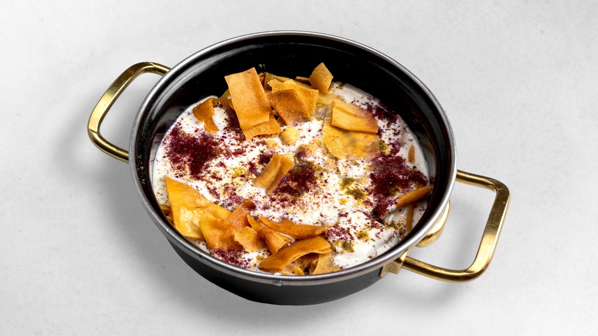 Kichererbsen, Fladenbrot, Jogurt, Soße