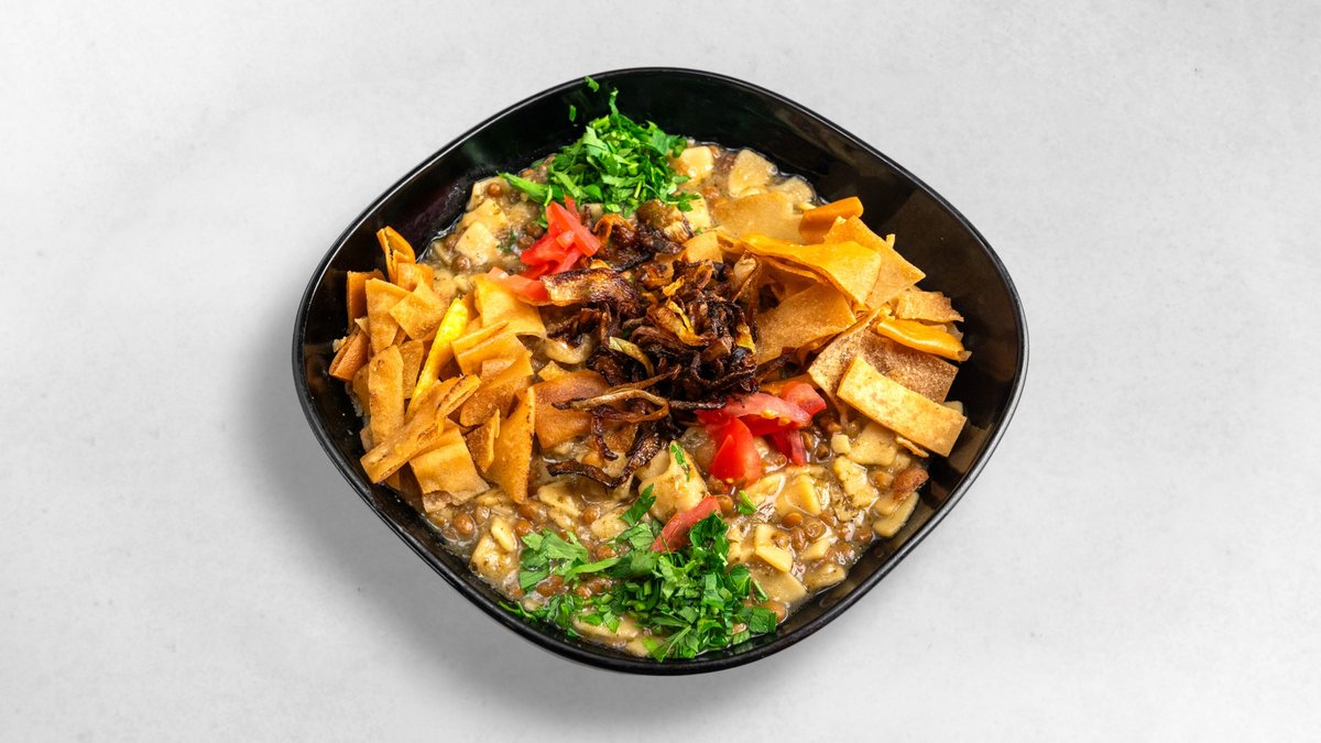 Linsen, Nudeln, Zwiebel, frischer Koriander