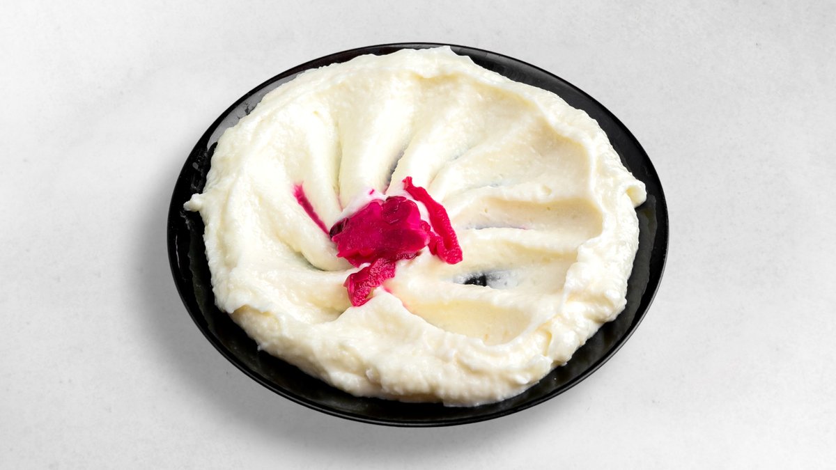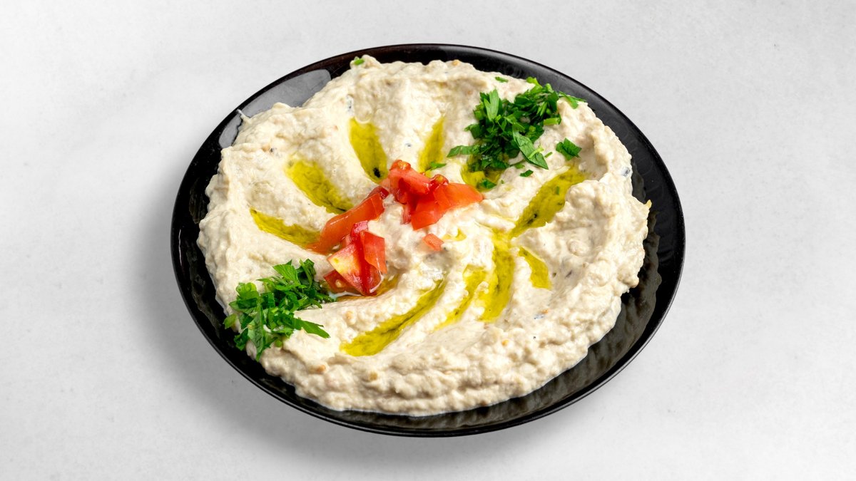 Gekochte Saubohnen purre, Sesamsoße, Knoblauch