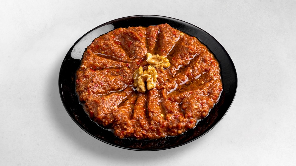 Rote Paprika, Zwiebel, Walnüsse, Brot