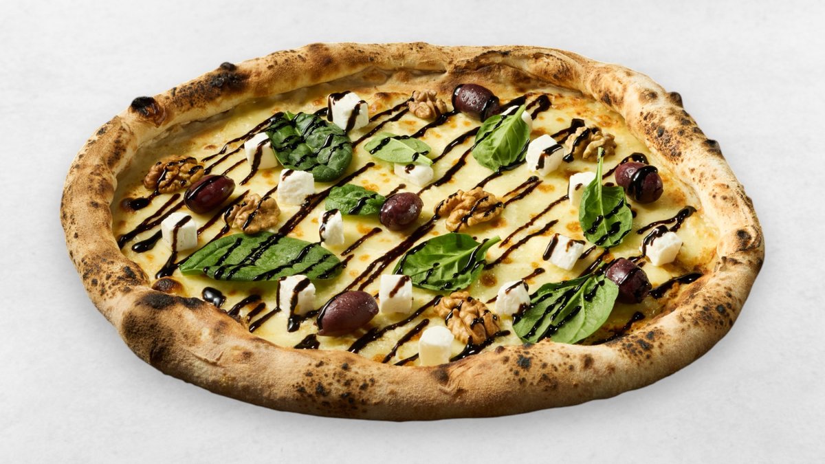 Crème Fraîche, Mozzarella, Feta, Olive, Babyspinat, Walnuss, Balsamico Glace