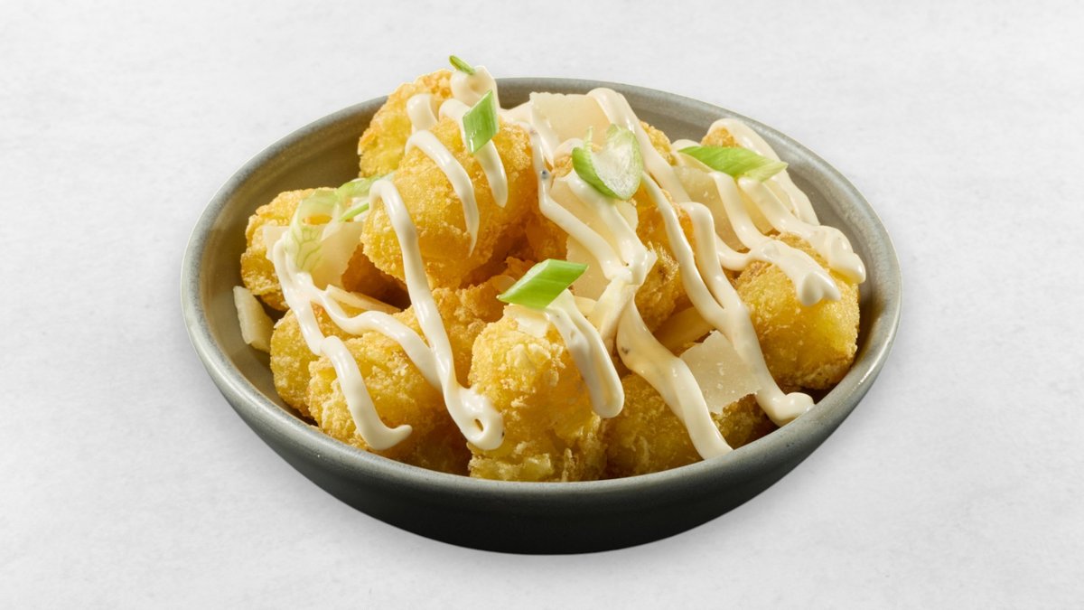 Knusprige Kartoffel Pops, Frühlingszwiebel Trüffel Mayo